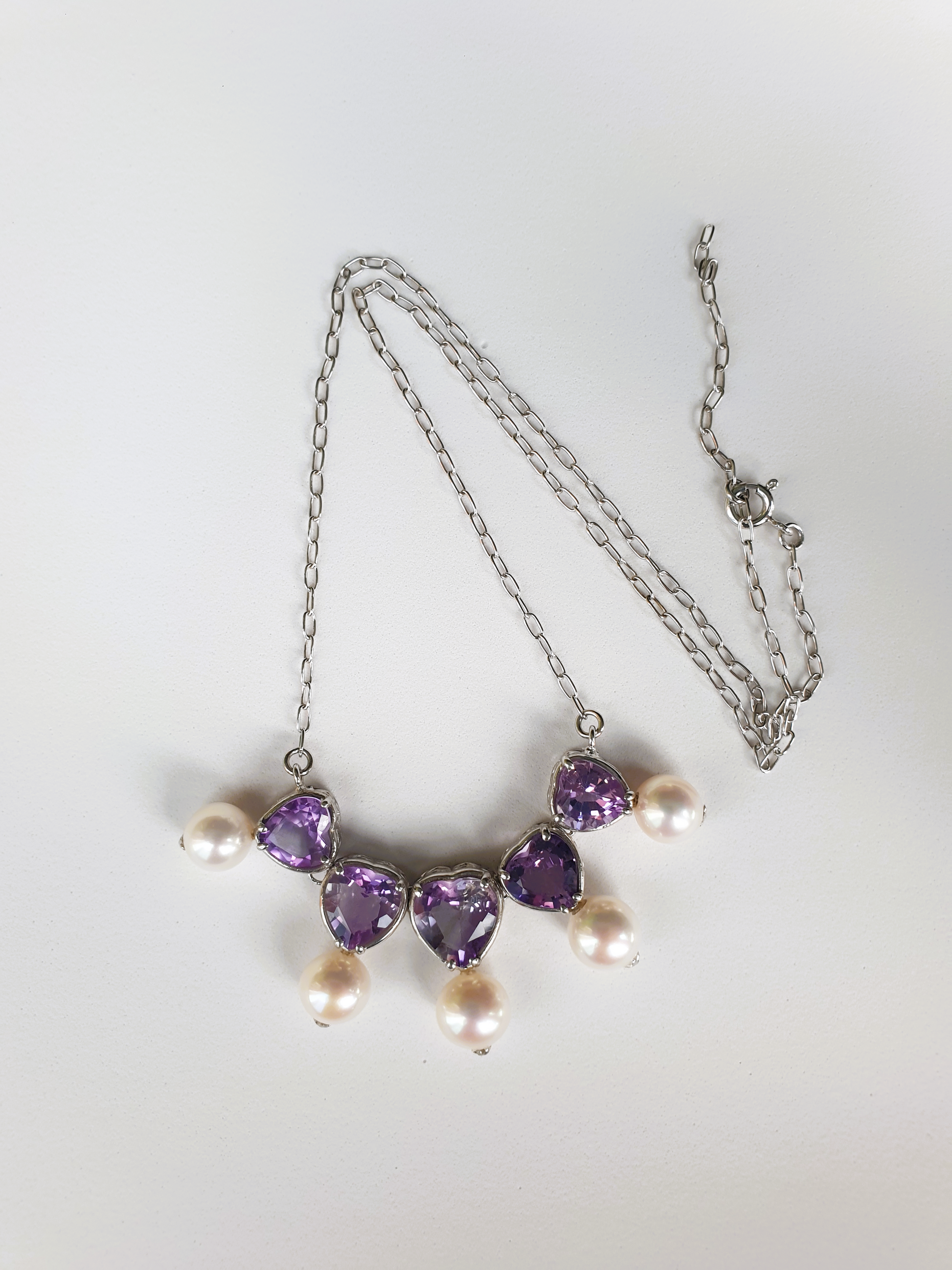 Natural Amethyst and Natural Freshwater Pearl Necklace