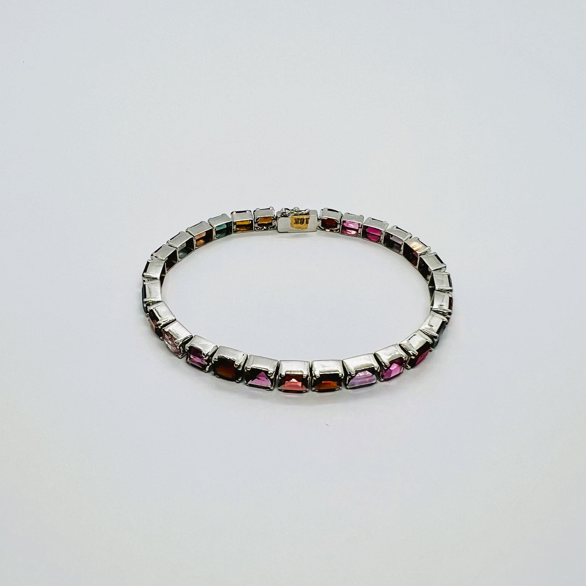 Experience the mesmerizing beauty of this natural multi-color spinel bracelet, where each radiant gem adds a splash of vivid color, creating a truly enchanting and elegant ensemble.